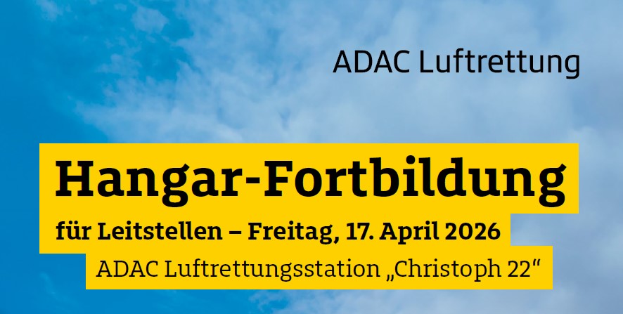 ADAC Luftrettung gGmbH EINLADUNG - Hangar-Fortbildung für Leitstellen an der ADAC Luftrettungsstation "Christoph 22" Sehr geehrte Damen und Herren, wir laden Sie sehr herzlich zu unserer Hangar-Fortbildung für Leitstellen ein. Die Veranstaltung findet am Freitag, 17. April 2026 von 10:00 bis 16:00 Uhr an der ADAC Luftrettungsstation "Christoph 22" am Bundeswehrkrankenhaus Ulm, Oberer Eselsberg 40, 89081 Ulm, statt. Bitte melden Sie sich bei Interesse bis spätestens 31. März 2026 über das untenstehende Formular an. Nach dem Absenden Ihrer Daten bei der Anmeldung erhalten Sie umgehend eine automatisierte Rückmeldung. Wir würden uns sehr freuen, wenn wir Sie bei unserer Fortbildung als Teilnehmer begrüßen dürfen. Mit freundlichen Grüßen ADAC Luftrettung gGmbH ADAC Luftrettungsstation "Christoph 22" Bundeswehrkrankenhaus Ulm, Oberer Eselsberg 40, 89081 Ulm Bitte füllen Sie alle notwendigen Felder in diesem Formular aus. * Hinweis: Bitte alle mit einem Sternchen versehenen Pflichtfelder ausfüllen! Online Event Registration mit myconvento. |