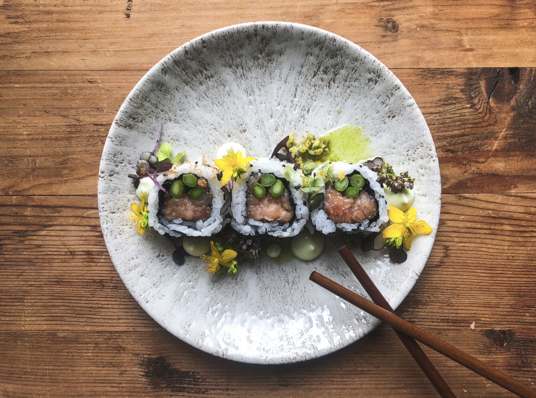 Alpensushi im Restaurant Weinlobbyist Berlin, 4-Hands-Dinner am 10.10., à la carte vom 13. bis 16.10. Im Restaurant Der Weinlobbyist in Berlin wird als Teil des Österreich-Programms Alpensushi serviert. Auf der Speisekarte stehen beispielsweise SeeViche und Maki Roll, hergestellt mit lokalen österreichischen Zutaten wie Wasabi von PhytonIQ,