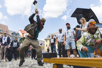 Teilnehmer:innen einem ausgebauten Simson-Motor das Fliegen beibringen mussten oder die „G(eh)kraft Challenge“, bei der die Fahrer:innen ihre Simsons, ganz nach dem Motto „wer sein Moped liebt, der schiebt“, ein Stück auf einen steilen Berg schieben mussten.