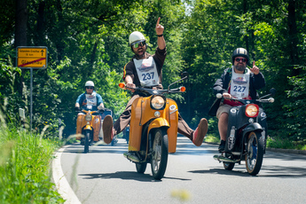 „Einfach nur Gänsehaut, wenn 300 Mopeds zusammen an der Startlinie losknattern“, sagt Veranstalter Daniel Auerswald. „Es lag Zweitaktduft in der Luft und überall gab es strahlende Gesichter. Das entschädigt für alles, was man in den letzten Wochen und Monaten an Herzblut reingesteckt hat.“