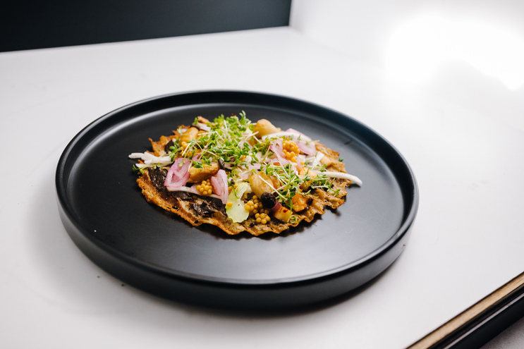 Pflanzenbasierte Klassiker neu gedacht (Sterneküche) Das vegetarische Sternerestaurant Bonvivant (Berlin) arbeitet mit Eggs from Plants – in den USA bekannt als JustEgg, einem der international führenden Anbieter für pflanzenbasiertes Ei auf Mungbohnenbasis.