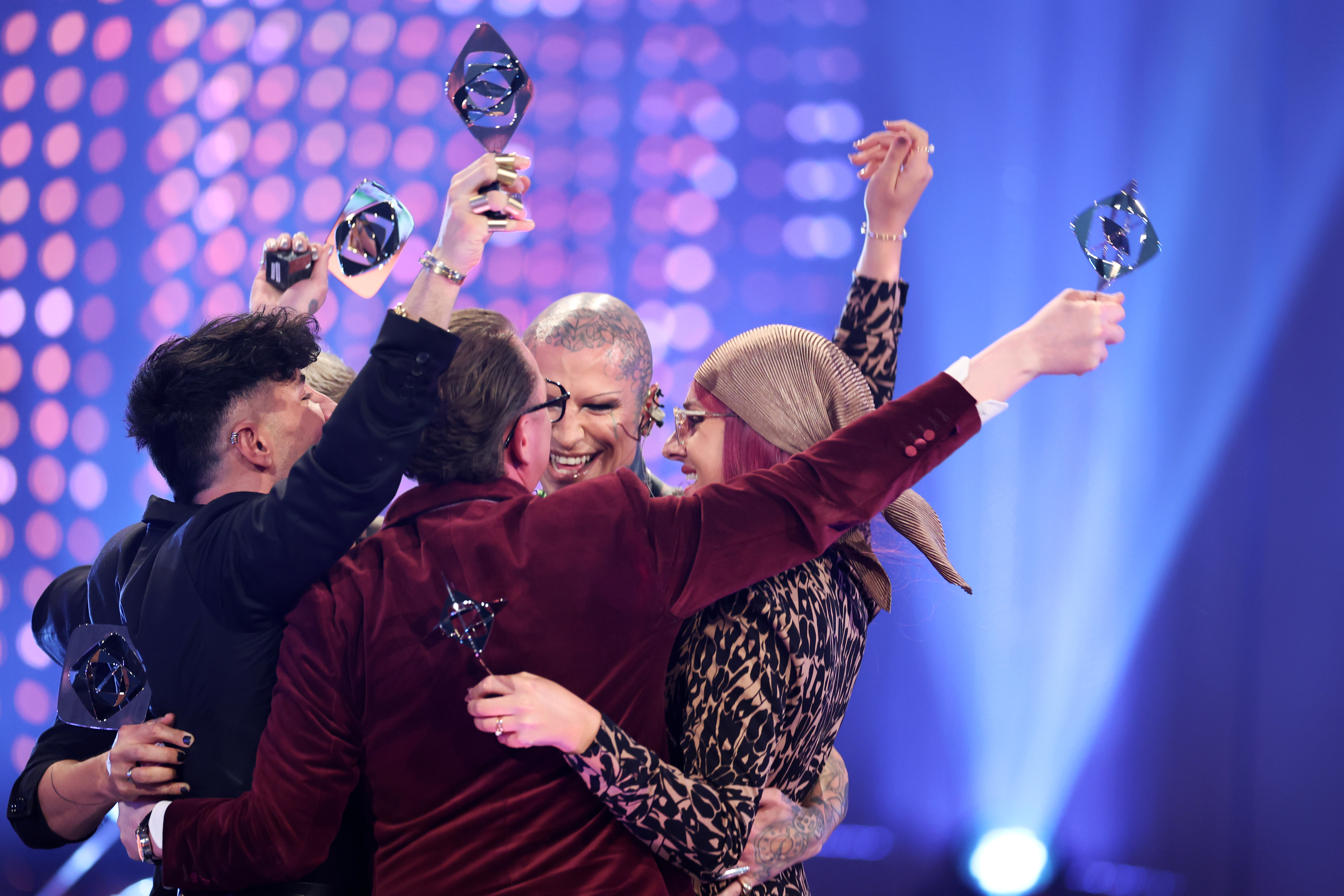 (v.l.) Die Fab 5 und Jella Haase freuen sich über ihre Grimme-Preise (Credit: Andreas Rentz/Getty Images for Netflix) | |