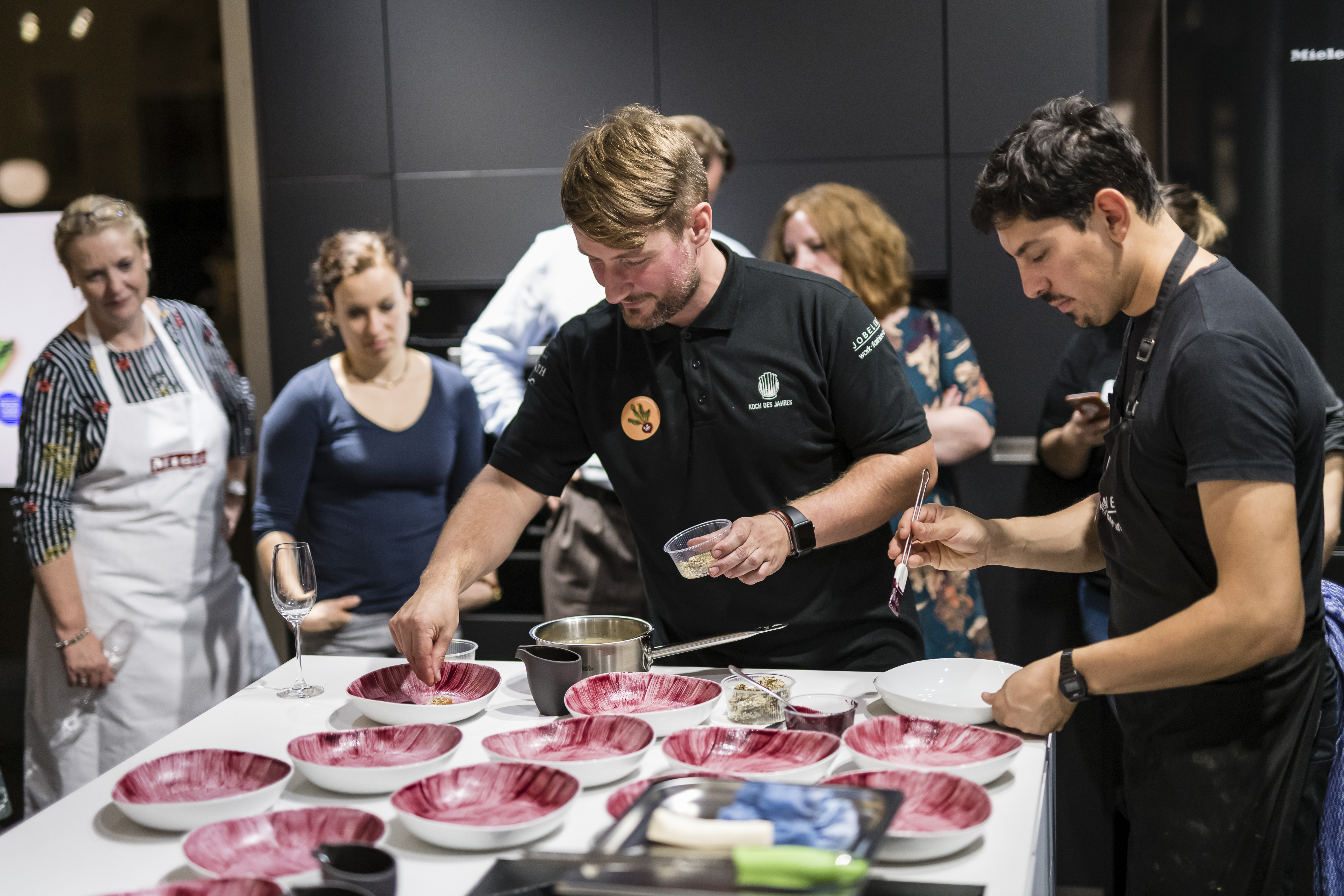 Ambitionierte Hobbyköch*innen lernen bei der Miele Cooking School Tipps von echten Profis – im Miele Experience Center Unter den Linden und als Premiere auch in München in der Miele Lounge in der Allianz Arena. Unter der Woche heißt es in der Hauptstadt Cook the World, Länderküche ist Programm. Mit dabei ist beispielsweise Koch dich Türkisch. Am Samstag feiert die Lange Nacht des Kochens Premiere mit knapp zehn Workshops zwischen 10 und 23 Uhr. Das Programm: Französische Omelettes von Sophia Rudolph, Nougat aus regionalen Zutaten von Kristiane Kegelmann und vieles mehr. In München gibt es beispielsweise einen Workshop von und mit Hermes Gehnen, dem Gründer des besonders in der Spitzengastronomie beliebten Kaviarproduzenten N25.