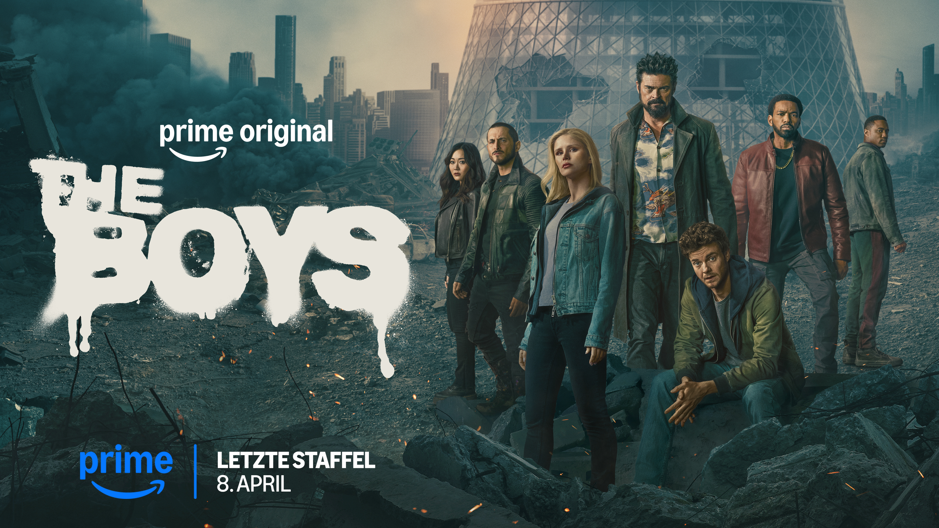 Staffel 5 veröffentlicht. Die mehrfach mit dem Emmy ausgezeichnete Erfolgsserie steuert damit auf ihr explosives Finale zu. Die fünfte Staffel The Boys startet am 8. April 2026 mit zwei Episoden, gefolgt von einer neuen Folge pro Woche bis zum unvergesslichen Serienfinale am 20. Mai 2026. Der Trailer vereint die bekannten Charaktere der Serie, die sich auf einen letzten Kampf vorbereiten und auf die ultimative Konfrontation zusteuern.