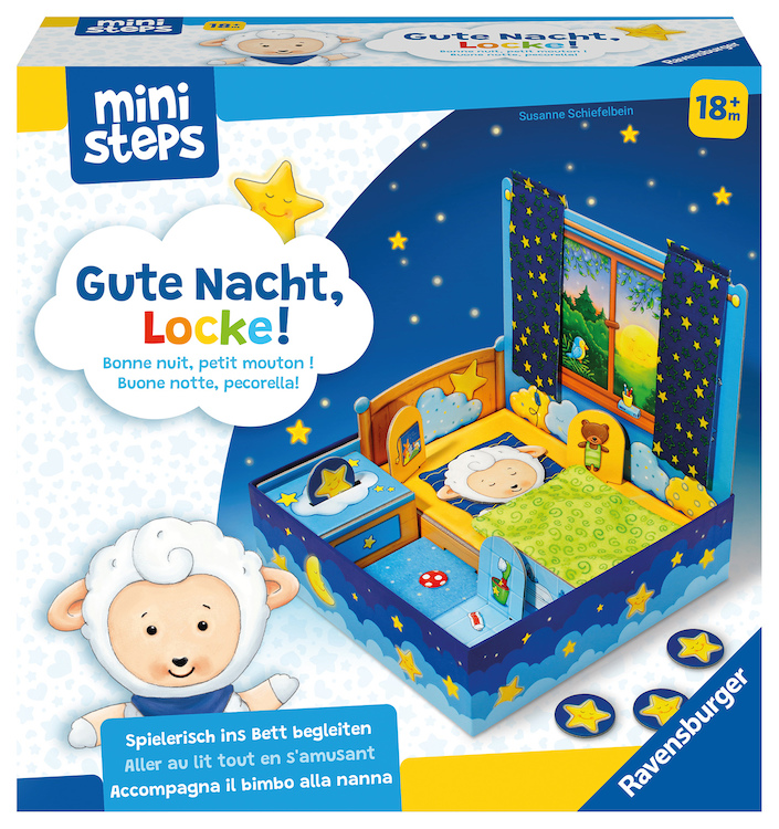 „Gute Nacht, Locke!“, heißt das neue dreidimensionale Spiel von Ravensburger ministeps. Zusammen mit dem kleinen Schaf Locke machen sich Kinder ab 18 Monaten bereit fürs Zubettgehen. Das besondere Konzept verbindet Lockes Welt mit dem Kinderzimmer zu Hause und schafft ein besonderes Abendritual. weiterlesen…