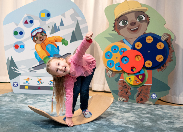 Hier ist Bewegung angesagt. Kleine Besucher und Besucherinnen können in der neuen Attraktion "Beweg dich schlau! mit Felix Neureuther" verschiedenen Bewegungsmodule testen.