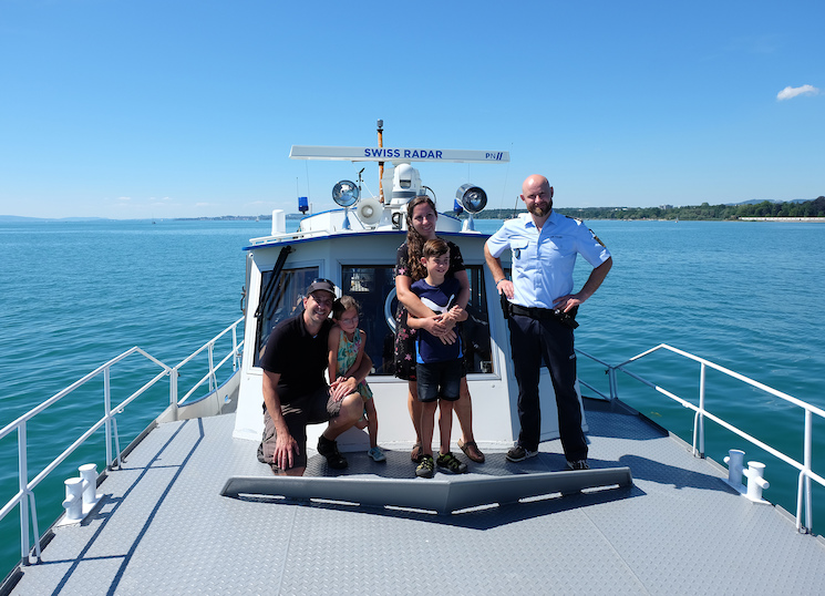 Traum erfüllt: Gewinner der Verkehrssicherheitstage 2021 fahren mit der Wasserschutzpolizei. Beim Elternquiz der 19. Verkehrssicherheitstage 2021 im Freizeitpark Ravensburger Spieleland konnte Familie F. aus dem Bodenseekreis alle Fragen richtig beantworten.