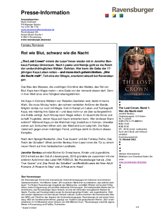 „The Lost Crown“ nimmt die Leser*innen wieder mit in Jennifer Ben-kaus Fantasy-Universum. Nach Lyaske und Nemija geht es ins Reich der undurchdringlichen Wälder: Eshrian. Hier kann die Gabe der 17-jährigen Kaya Leben retten – und muss doch geheim bleiben. „Wer die Nacht malt“, Teil eins der Dilogie, erscheint aktuell bei Ravens-burger. weiterlesen…
