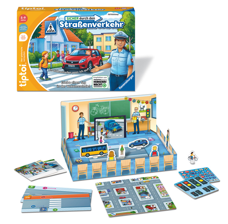 Welche Verkehrszeichen gibt es? Was müssen Kinder am Zebrastreifen beachten? Mit dem Ravensburger Lernspiel „tiptoi® Sicher durch den Straßenverkehr“ erleben Kinder ab Vorschulalter einen spielerischen Tag in der Verkehrsschule. Anhand von 50 typischen Situationen auf Bildkarten, in kleinen Rollenspielen und mit spannenden Aufgaben lernen die Kinder, wie sie sich im Straßenverkehr richtig verhalten. weiterlesen…