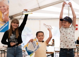 Die Gewinner der Kategorie „Familie“ von links nach rechts: Dritter Platz, „Die Webers“ mit Dominik (7), erster Platz, Silvia & Pia (11) und zweiter Platz, Anke & Fabian (12).