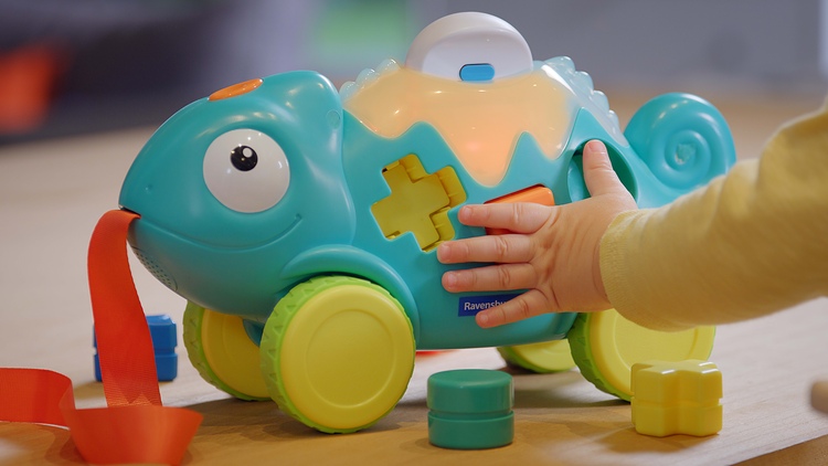 Play _Musikalisches Farben und Formen Chamäleon Close up_Kinderhand