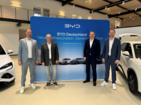 Auf dem Bild von links nach rechts: Jürgen Lobach, Chief Fleet Officer FINN; Maria Grazia Davino, SVP Regional Managing Director BYD Europe; Patrick Schulz, Sales Director BYD Deutschland; Paul Nobis, SVP Fleet FINN