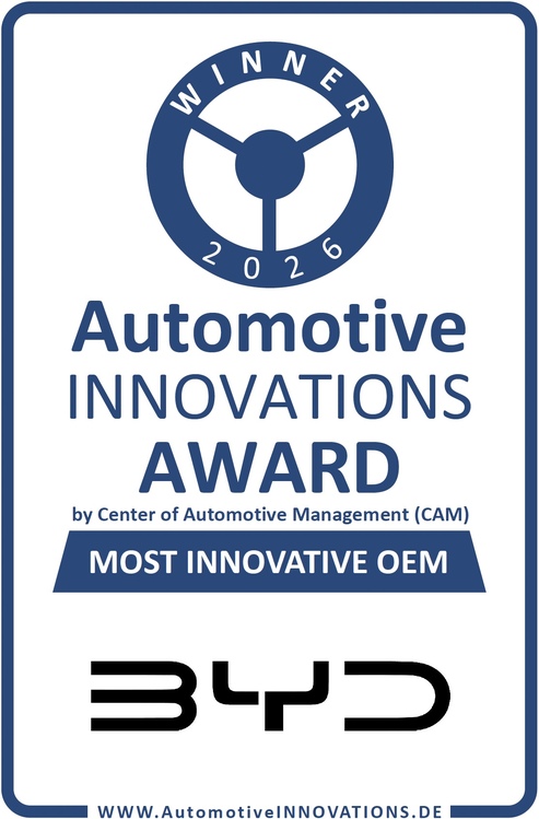 Im Rahmen des AutomotiveINNOVATIONS Award 2026 hat das renommierte Center of Automotive Management der BYD-Gruppe den 1. Preis als innovationsstärkster Automobilkonzern verliehen.